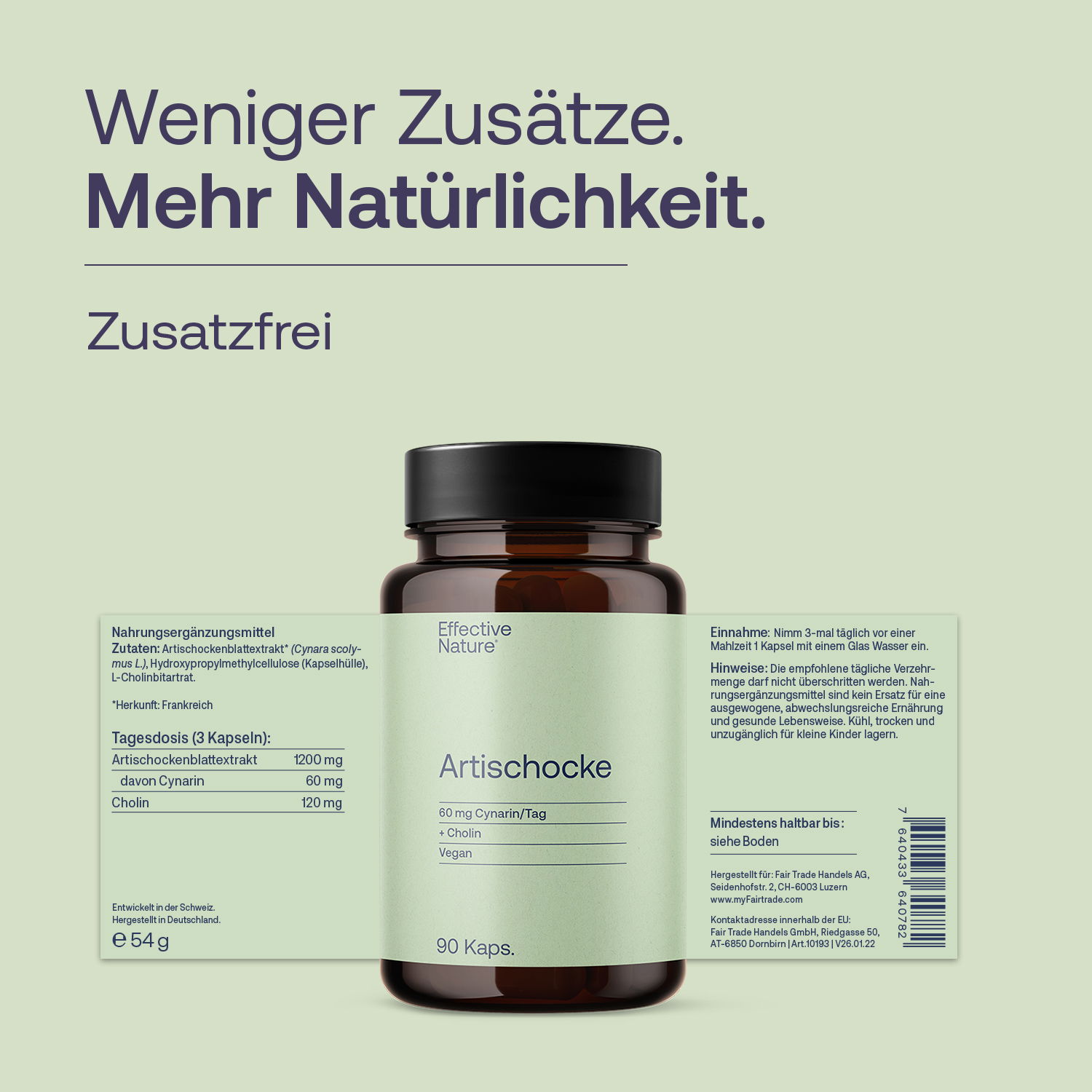 In der heutigen modernen Küche stellt die Artischocke eine beliebte Delikatesse dar. Doch nicht nur gekocht kann das körbchenförmige Gemüse zubereitet werden. Der vollständig natürliche Artischockenextrakt von effective nature setzt ebenfalls auf bitter! Mit einem Extraktionsverhältnis von bis zu 6:1 enthalten die Kapseln einen hochkonzentrierten Auszug der Artischocke. Die Kapseln sind sehr reich an den natürlichen Bitterstoffen des Blütengemüses und sind hochdosiert. So ist beispielsweise der sekundäre Pflanzenstoff Cynarin mit 60 mg pro Tagesdosis standardisiert enthalten. Das Besondere am Artischockenextrakt mit Cholin von effective nature ist, dass keine Zusatzstoffe, Aromen oder Färbemittel enthalten sind. Es ist ein purer Auszug aus der Artischocke, der zu 100% vegetarisch ist. Die Einnahme bietet sich vor allem vor fettigen Mahlzeiten an. Übrigens: Die Artischocke wurde im Jahr 2003 als Arzneipflanze des Jahres ausgezeichnet. Cholin, ein ebenfalls für Vegetarier und Veganer problemlos verzehrbarer Stoff, ergänzt aufgrund seiner Eigenschaften den Artischockenextrakt auf sinnvolle Weise.