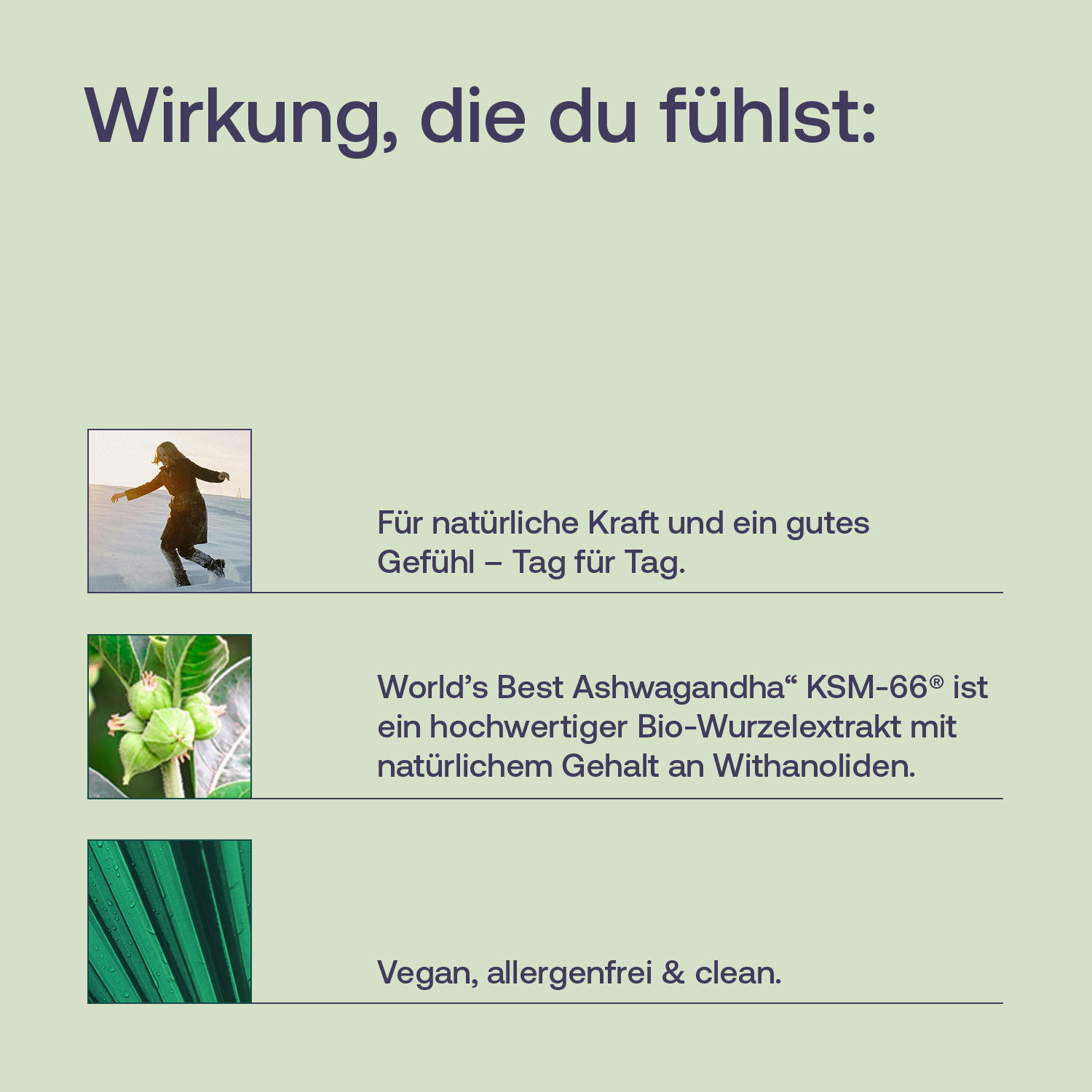 - KSM-66 wird ausschliesslich aus der Ashwagandha Wurzel gewonnen und enthält deshalb das volle Spektrum wertvoller sekundärer Pflanzenstoffe und die sog. Withanolide.
