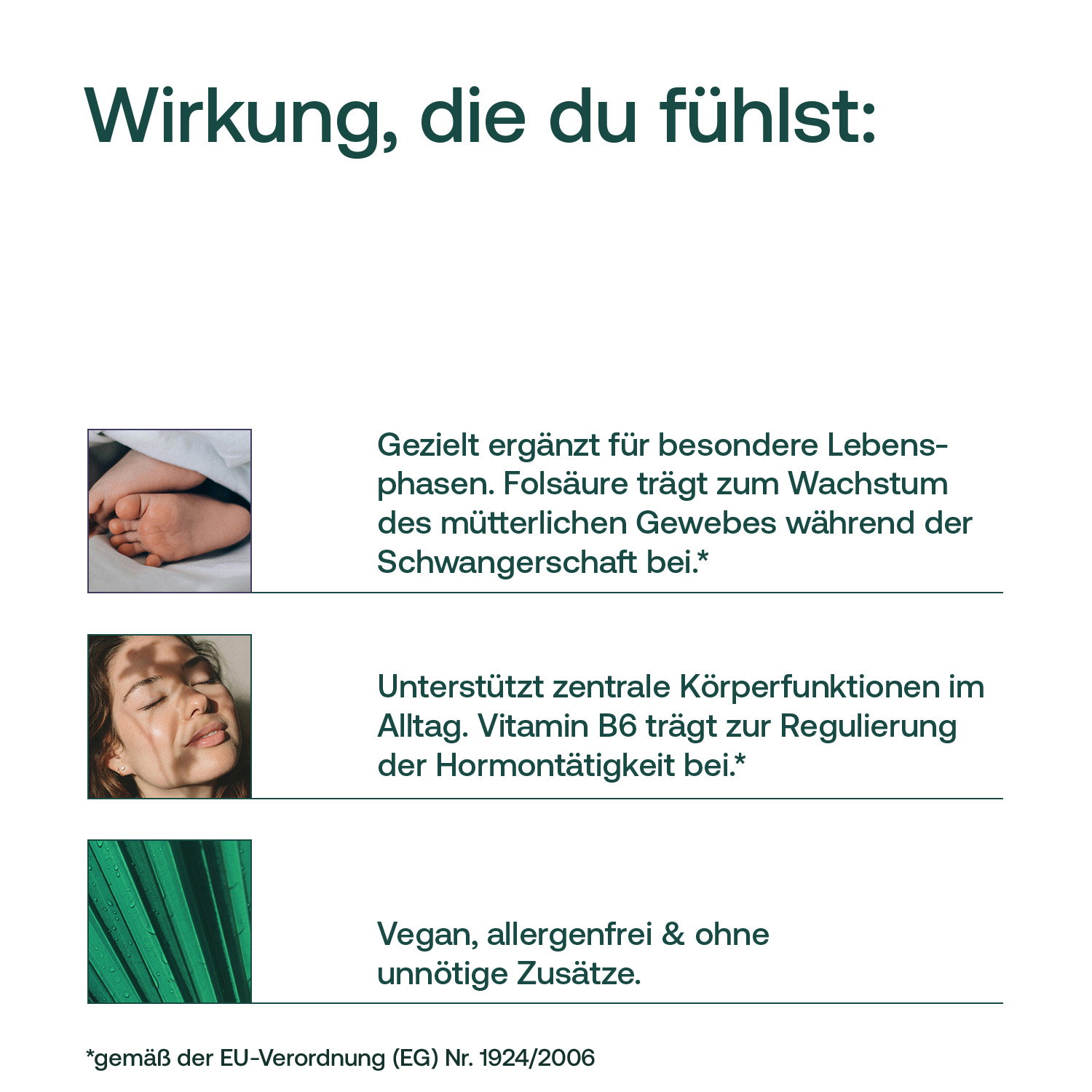 • Verbesserte Rezeptur mit 400mcg Folsäure pro Tagesdosis