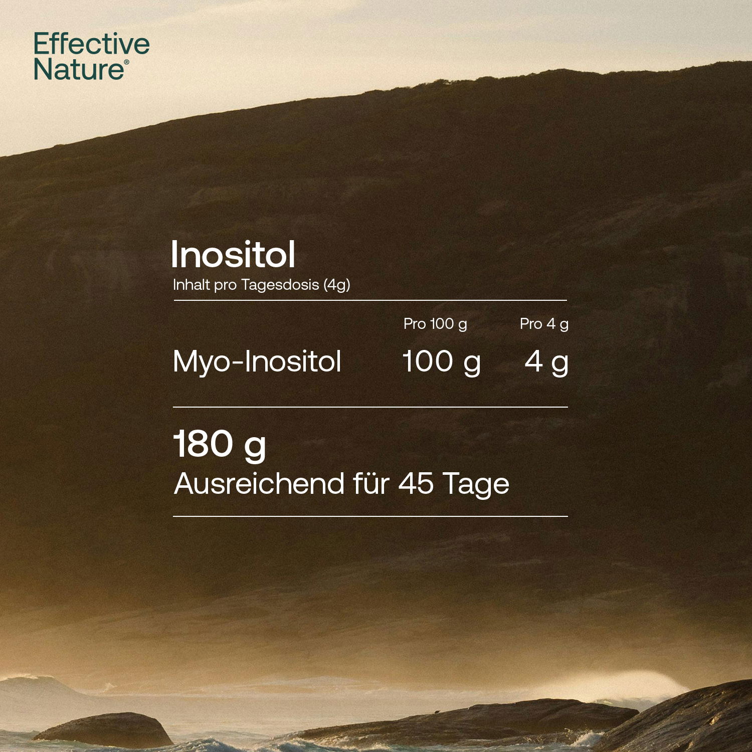 Myo-Inositol ist in geringen Mengen in einigen Lebensmitteln enthalten – besonders in Zitrusfrüchten, Hülsenfrüchten und Vollkornprodukten. Als Bestandteil bestimmter Phospholipide kommt es auch in Zellmembranen vor. Die feine, pulverisierte Form unseres Produkts sorgt für eine einfache Dosierung und Anwendung.