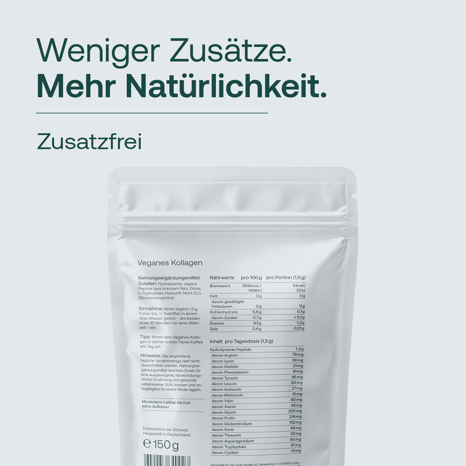 | Veganes Kollagen | 1,5 g (Tagesdosis) |