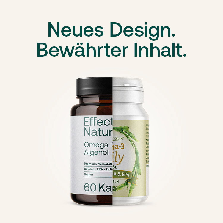 Im Gegensatz zum flüssigen Omega-3 von effective nature ist Omega-3-Algenöl niedriger dosiert und für eine langfristige, tägliche Einnahme geeignet.