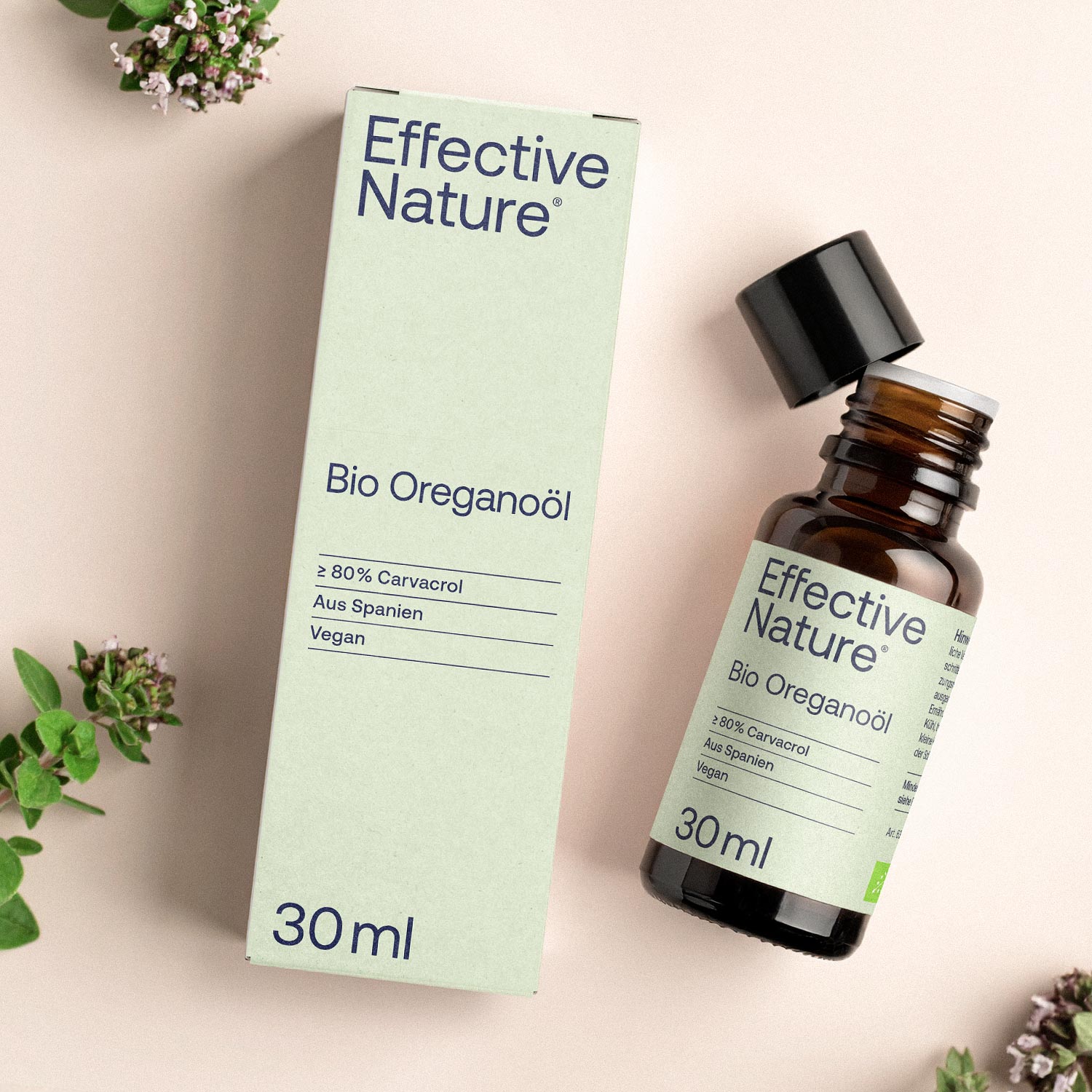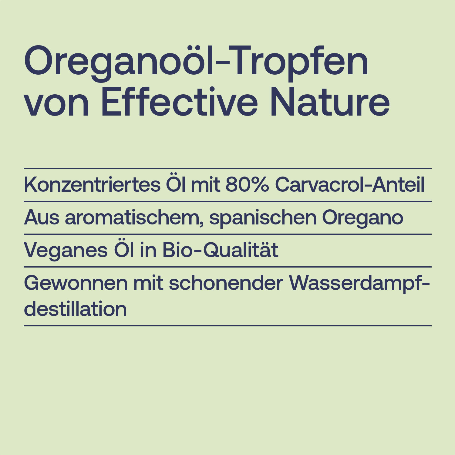 Bei den Oreganoöl-Tropfen von effective nature handelt es sich um ein hocharomatisches, ätherisches Öl, das mittels besonderer Verfahren aus der Oregano-Pflanze gewonnen wird.