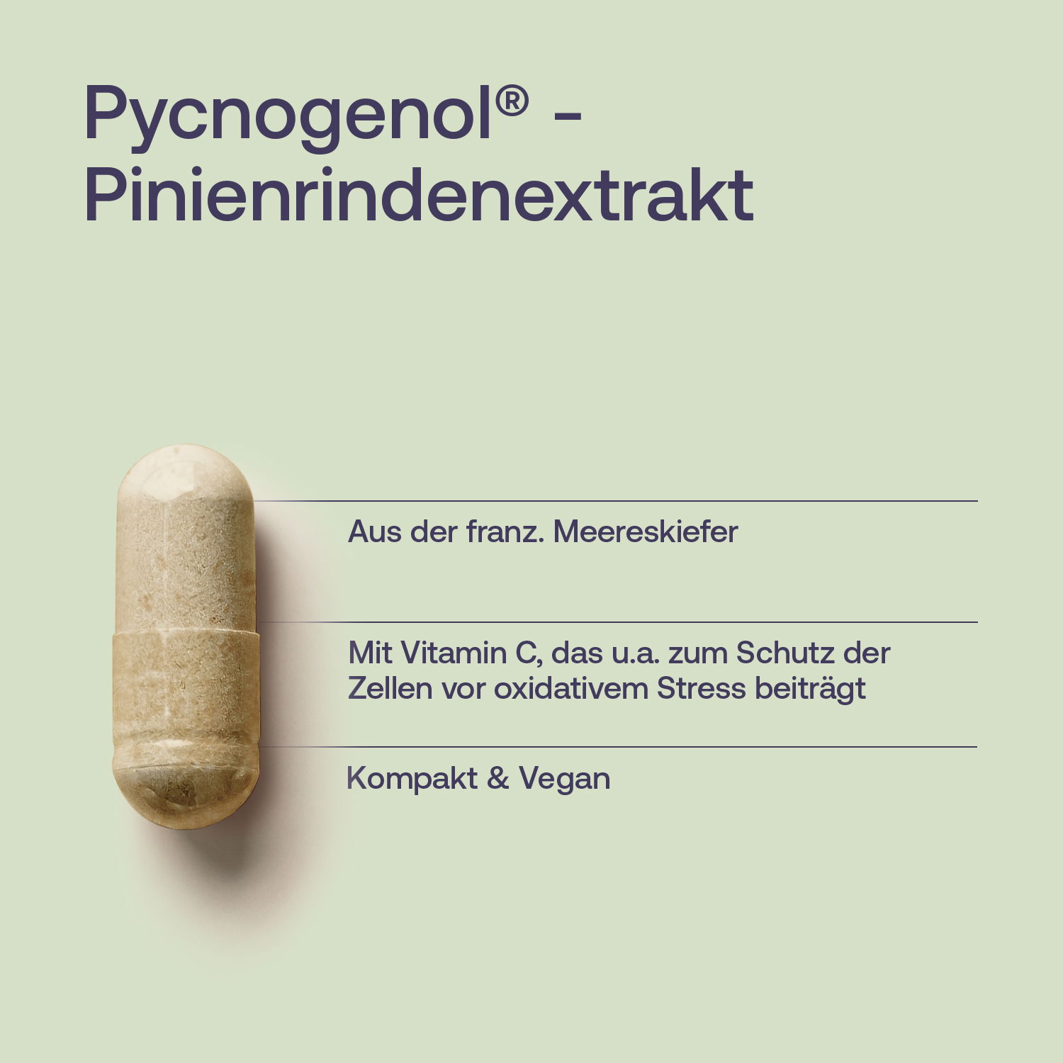 Mit diesen Kapseln nehmen Sie ein völlig natürliches Pycnogenol® auf - Herbizide oder Pestizide kommen bei dem Anbau der Meereskiefer nicht zum Einsatz. Rund 400 Studien erforschen und zeigten in den letzten Jahre die Effekte von Pycogenol® sowie seine Unbedenklichkeit.