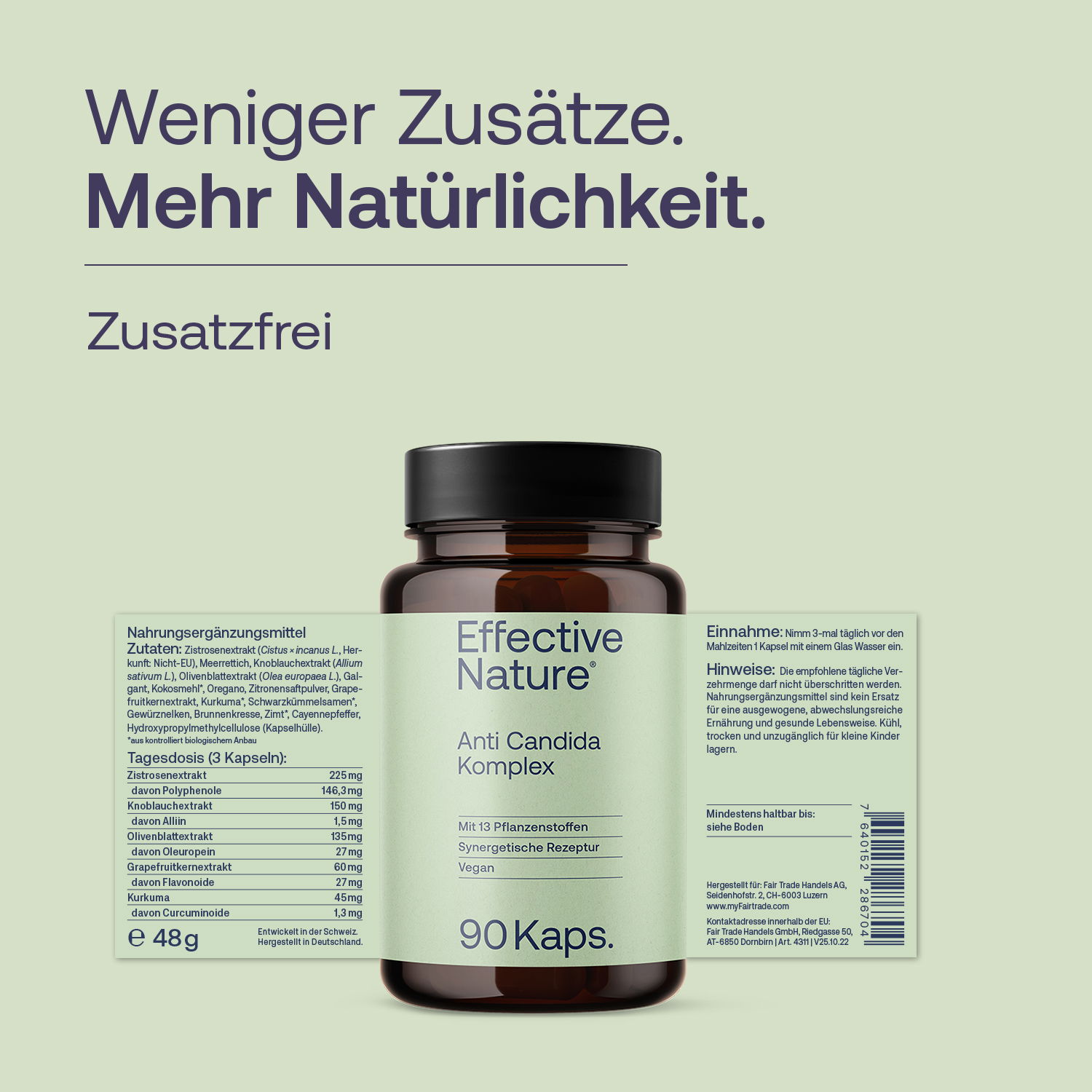 Ihre pflanzliche Reinheit und im Speziellen ihr beeindruckender Synergismus in Bezug auf die Stärkung der körpereigenen Abwehrkräfte und der Gesundheit des Verdauungstraktes zeichnen die Anti-Candida-Kapseln mit Zistrosenextrakt von effective nature besonders aus. Die Zusammensetzung der Rezeptur von effective natures Anti Candida – aus dem Ayurveda bekannte Zutaten treffen auf heimische Pflanzen und Geheimtipps wie das Kurkuma auf altbekannte Veteranen wie den Grapefruitkernextrakt – besticht durch Innovation und Vielseitigkeit. Hinweis: Dass diese Anti-Candida-Kapseln Knoblauch enthalten, hat keinerlei Auswirkungen auf die Frische Ihres Atems. Auch unangenehmes Aufstossen (wie häufig bei Knoblauch-Präparaten zu beobachten) ist keine Folge der Einnahme von Anti Candida. Die wirksamen Schlüsselsubstanzen in Anti Candida von effective nature sind mit Sicherheit das im enthaltenen Knoblauchextrakt zu findende Alliin, das hier in sehr konzentrierter Menge vorliegt, und Oleuropein aus Olivenblättern sowie vor allem der Extrakt der Zistrose.
